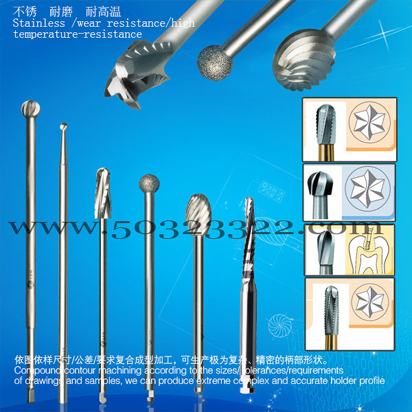LZQ是一个优秀的高精密全精研磨医疗工具、刀具、冶具、零配件、特殊新产品的代工企业,目前主要为国际一流品牌的供应商做供应商代工,代工主要用户也均为医疗工具、冶具的制造企业。因为长期从事于飞机、舰艇、汽车等精密配件生产用的非标准工模具、成型冶具、不锈钢钨钢钎焊工夹具的生产加工,从而逐渐建立并不断完善先进综合的生产体系及各种精密技术生产加工能力,实现各类医疗工具、冶具配件产品的高精密、高度复杂、组合成型的几何加工,依图依样尺寸/公差/要求复合成型加工,可生产极为复杂、精密的形状。工具、刀具可以有分段标记、不同颜色的色圈、不同颜色的涂层、带内冷孔……要求,只要有要求即可实现。