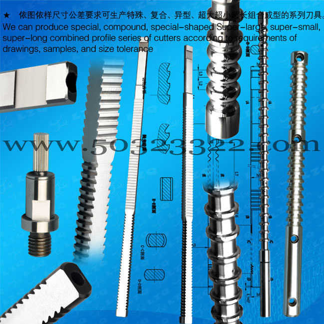 依图依样尺寸公差要求可生产特殊、复合、异型、超大超细超长组合成型的系列刀具。