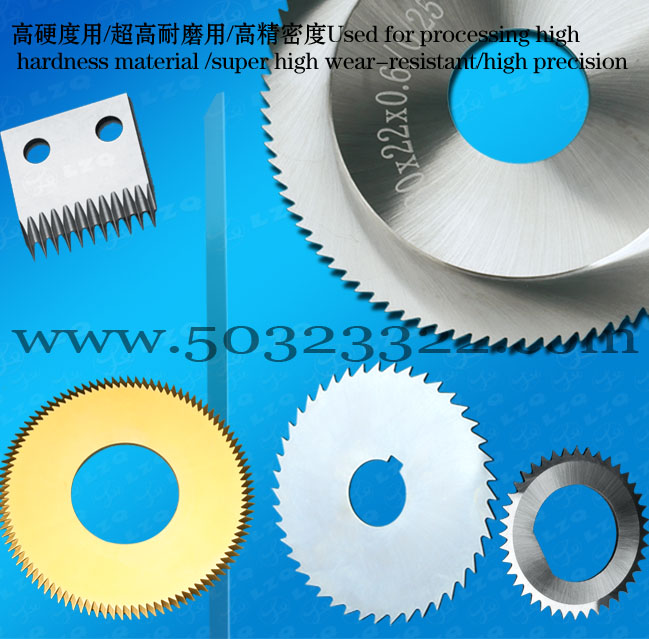 我司供应各种直齿形、圆弧形、交错齿形、高低齿形整体极超微粒钻石钨钢锯片铣刀、半圆键铣刀、T型槽铣刀、角度铣刀、高速钢切口铣刀、三面刃铣刀。广泛应用于眼镜配件、自行车零部件、钟表等各类轻工机械行业。具有切削效率快、耐磨性高、红硬性高的各种切削工具。厚度公差可控制在5μm,外径公差控制在0.03mm,侧面跳动5μm,表面粗糙度0.4μm,可多片组合,精密度好!