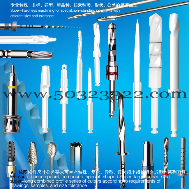 LZQ是一个优秀的高精密全精研磨医疗工具、刀具、冶具、零配件、特殊新产品的代工企业,目前主要为国际一流品牌的供应商做供应商代工,代工主要用户也均为医疗工具、冶具的制造企业。因为长期从事于飞机、舰艇、汽车等精密配件生产用的非标准工模具、成型冶具、不锈钢钨钢钎焊工夹具的生产加工,从而逐渐建立并不断完善先进综合的生产体系及各种精密技术生产加工能力,实现各类医疗工具、冶具配件产品的高精密、高度复杂、组合成型的几何加工,依图依样尺寸/公差/要求复合成型加工,可生产极为复杂、精密的形状。工具、刀具可以有分段标记、不同颜色的色圈、不同颜色的涂层、带内冷孔……要求,只要有要求即可实现。