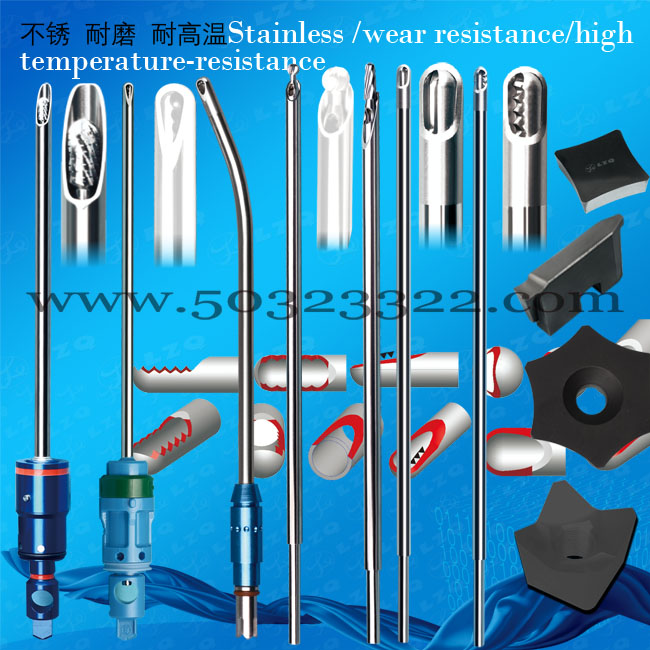 如:削减切骨插刀,延长削减切骨插刀,原始骨插刀,带宽窗口切骨插刀,直角外层套管,点解法抛光切削刃,骨切刀切削毛刺刀片、门齿状精锐刀片,合力切削利口,小窗口满圆弧切除器,弯月面刨刀,进取性弯月面刨刀,进取性弯月面加齿刨刀,双弯月面刨刀,进取性弯月边刨刀,修整器,锋利进取性一端开口刨刀 , 多用型手外科显微器械刨刀 ,多用型刨刀,电镀切除刀片刃口。