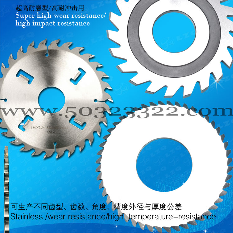 我司供应各种直齿形、圆弧形、交错齿形、高低齿形整体极超微粒钻石钨钢锯片铣刀、半圆键铣刀、T型槽铣刀、角度铣刀、高速钢切口铣刀、三面刃铣刀。广泛应用于眼镜配件、自行车零部件、钟表等各类轻工机械行业。具有切削效率快、耐磨性高、红硬性高的各种切削工具。厚度公差可控制在5μm,外径公差控制在0.03mm,侧面跳动5μm,表面粗糙度0.4μm,可多片组合,精密度好!