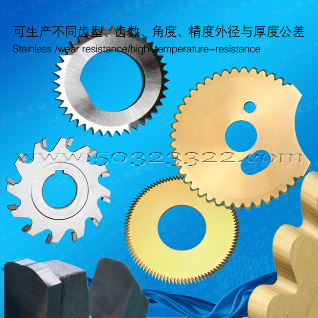 我司供应各种直齿形、圆弧形、交错齿形、高低齿形整体极超微粒钻石钨钢锯片铣刀、半圆键铣刀、T型槽铣刀、角度铣刀、高速钢切口铣刀、三面刃铣刀。广泛应用于眼镜配件、自行车零部件、钟表等各类轻工机械行业。具有切削效率快、耐磨性高、红硬性高的各种切削工具。厚度公差可控制在5μm,外径公差控制在0.03mm,侧面跳动5μm,表面粗糙度0.4μm,可多片组合,精密度好!