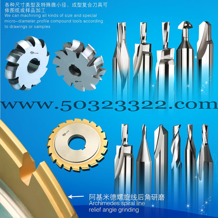 刃型:(标准及非标准1-12刃系列铣刀、铰刀): 深沟型,圆头型,端角R型,空芯型,斜刃(锥度)型,长刃型,铝、铜专用,分屑槽(粗铣用)