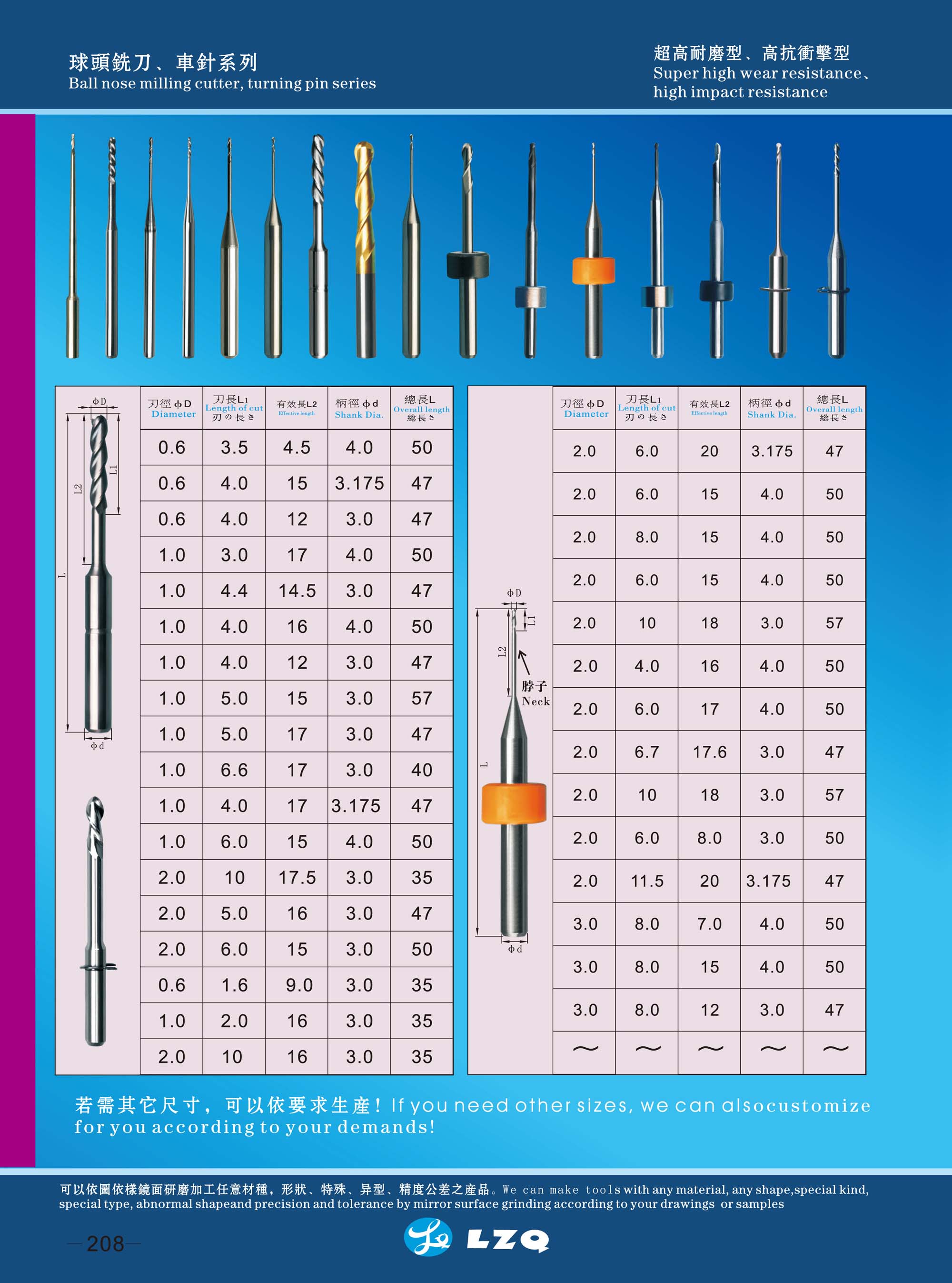 φ1.0(R0.5)一般用2刃。 φ2.0(R1.0)和φ3.0(R1.5)和φ4.0(R2.0)用3刃的。有的客户只要提供刀具和配用的模拟头即可。有的客户要求配塑料环,定位高度作用。要求配环的要告知配的高度,每家都不一样!