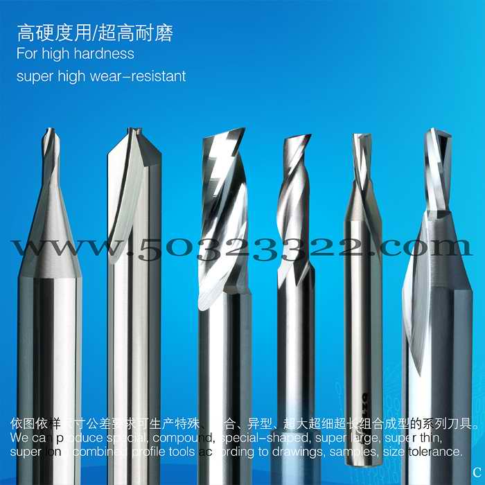 刃型:(标准及非标准1-12刃系列铣刀、铰刀): 深沟型,圆头型,端角R型,空芯型,斜刃(锥度)型,长刃型,铝、铜专用,分屑槽(粗铣用)
