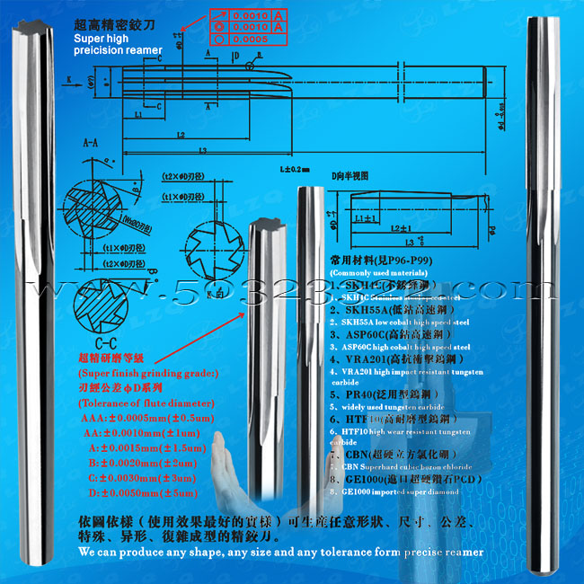 (standard and non-standard) tolerance of flute diameter of diamond tungsten steel can be up to ±0.001mm (±1μm) high, and tolerance of holder diameter is more than h6.